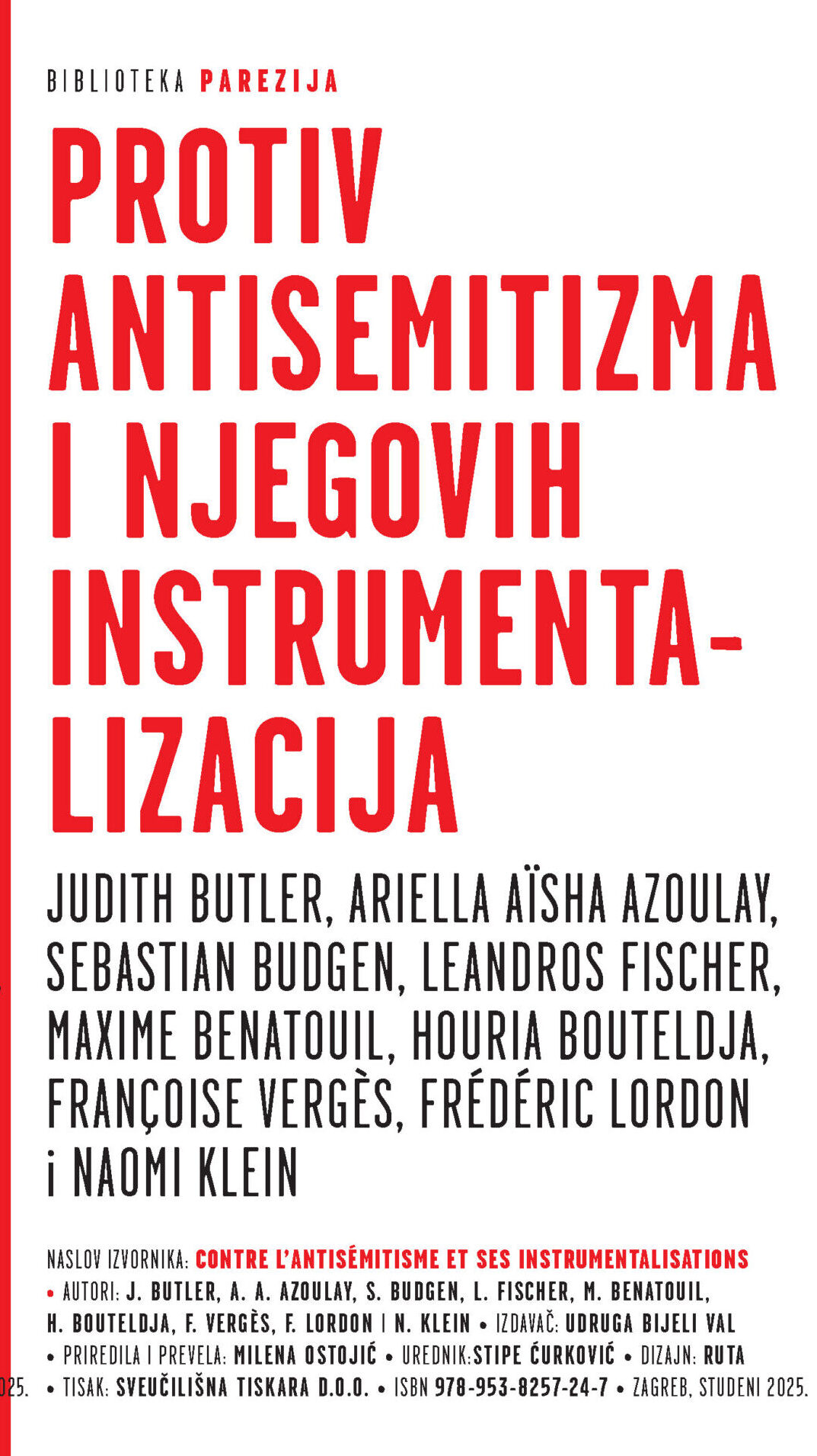 Donosimo tekst iz zbornika „Protiv antisemitizma i njegovih instrumentalizacija“ koji, izvorno objavljen u Francuskoj 2024., sada izlazi i u hrvatskom prijevodu. Nastao usred genocidnog nasilja nad stanovništvom Gaze, on donosi žanrovski raznolike intervencije u kontroverznu raspravu o odnosu antisemitizma i njegovih strateških (zlo)upotreba s ciljem imunizacije izraelske državne politike. Uz Frédérica Lordona, autorice i autori, među kojima su mnogi židovskog porijekla, istaknuta su kritička imena: Judith Butler, Ariella Aïsha Azoulay, Sebastian Budgen, Leandros Fischer, Maxime Benatouil, Houria Bouteldja, Françoise Vergès i Naomi Klein
