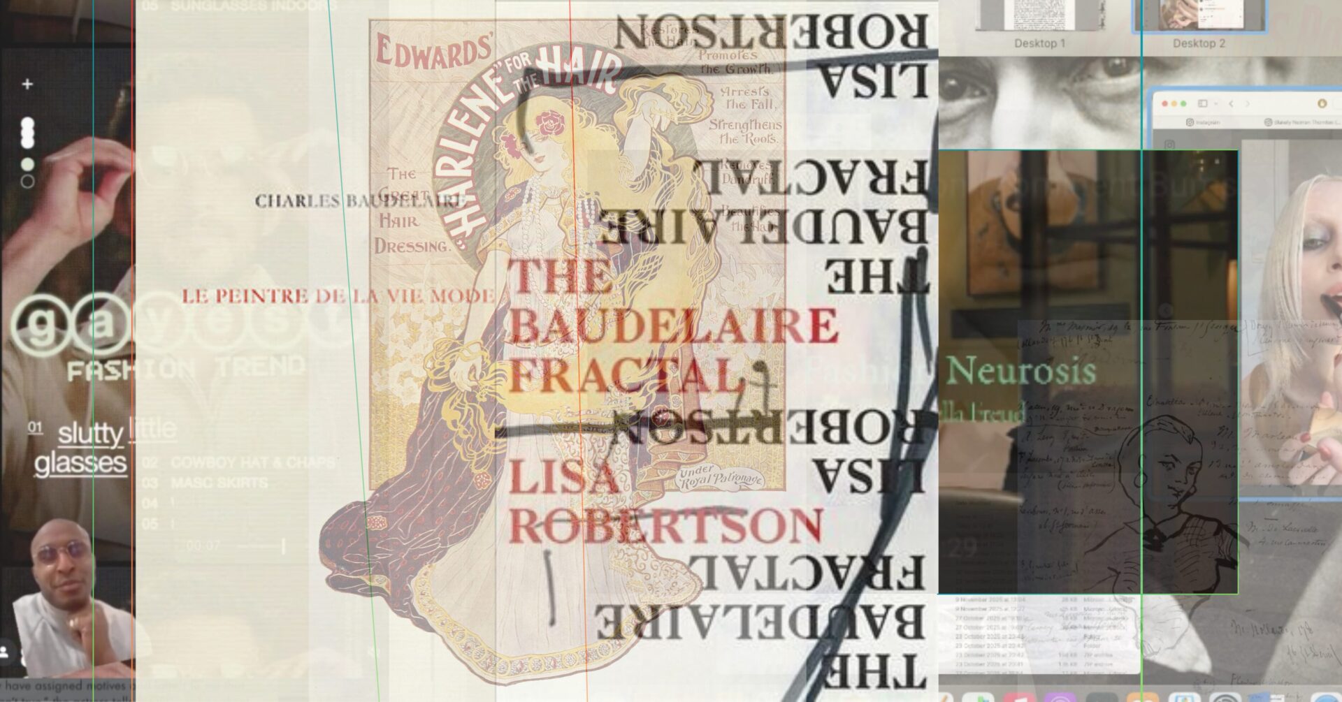 Pišući Baudelaireov fraktal Lisa Robertson piše i ne piše autofikciju, piše fraktalni auto/portret usidren u problematiku subjektiviteta koji se sklapaju, dodiruju a ne miješaju, koji se stakle više nego zrcale. I isto je mehanizam de/konstruktivan u smislu da se subjektivitet rastavlja kako bi se sastavio, uvijek iznova s pukotinama i privremeno, i također je narcistički u smislu fiksacije na vlastiti uvišestručeni odraz. Samo što je tekst ploha dodira, ujedno ono što dodir priječi i zaustavlja. Čitanje postaje prostorvrijeme pronalaska vlastitog odraza koji potvrđuje nešto što smo znale i neznale i tražile i neznale da tražimo. Robertson puno piše o zamjenicama: