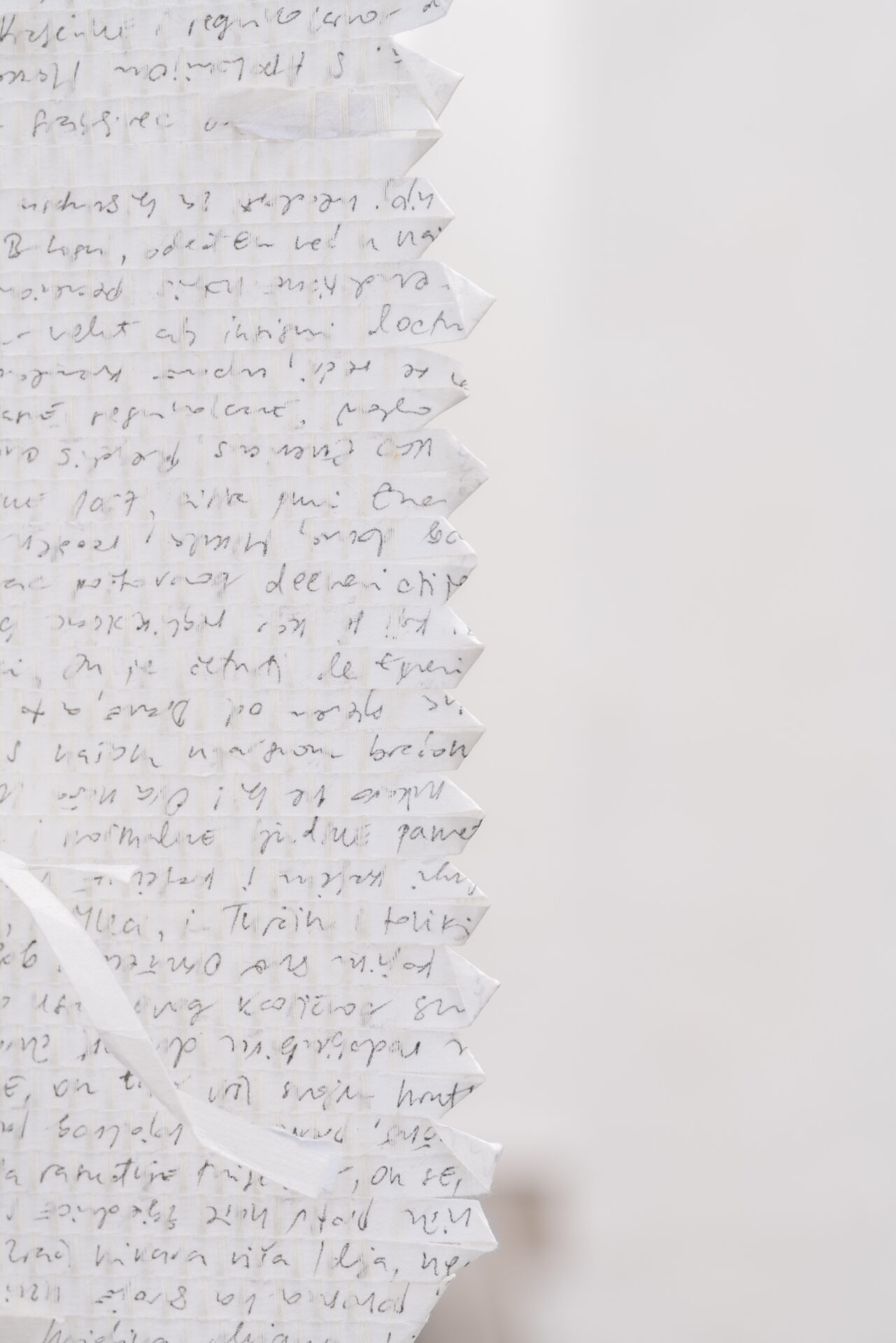 Za naš serijal „Književnost&vizualne umjetnosti” Ana Mušćet krenula je tragovima Krležinih djela, ratne meterologije i kolektivnih pamćenja trauma sačinivši niz bilješki za veći multimedijski projekt kodnog imena “Uzorak za vezenje snijega”. Dobili smo tako uvid u sam proces umjetničkog rada i načine na koji se uspostavljaju intermedijski transferi. U Galeriji predstavljamo i već realizirani i nagrađivani rad iste autorice pod nazivom “Zastave” potaknut također Krležinim djelom. Više o projektima možete saznati na sljedećim poveznicama: “Uzorak za vezenje snijega” i “Zastave“. (Portret autorice: Marko Todorov, CROPIX)